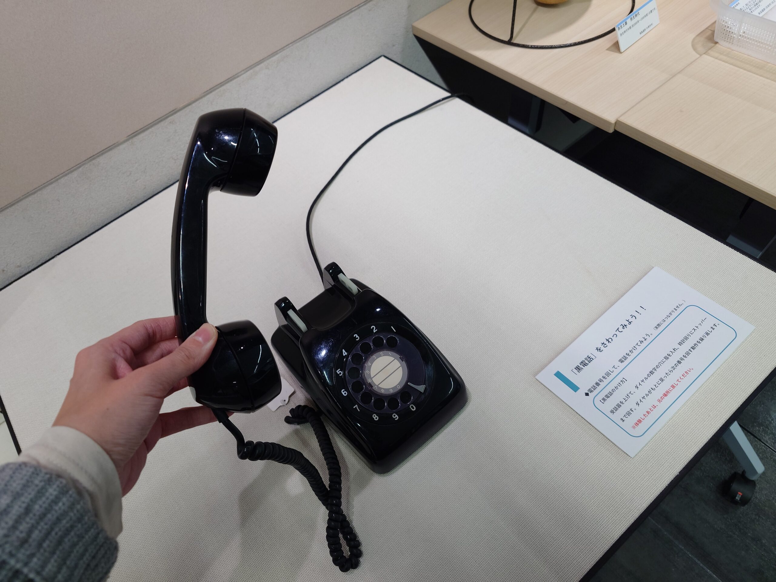 黒電話を実際に持ってみることができるコーナーもあります。ご来館お待ちしております!!